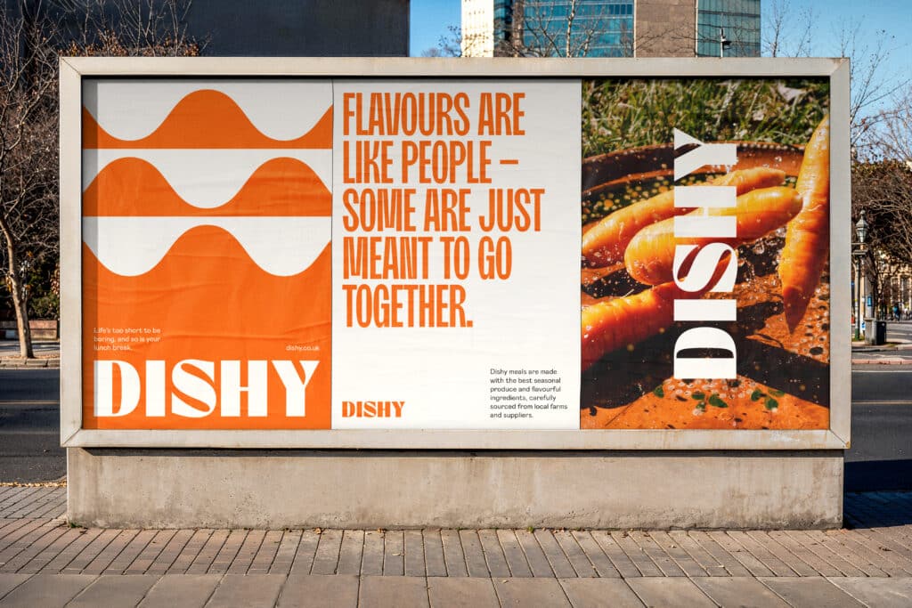 From there, the visual identity takes its cues directly from Dishy’s vibrant flavours: a rich, expressive colour palette inspired by seasonal produce; layered typography that mirrors the brand’s personality; and art direction designed to celebrate provenance, craft, the detail of recipes and the joy of sharing meals together.
