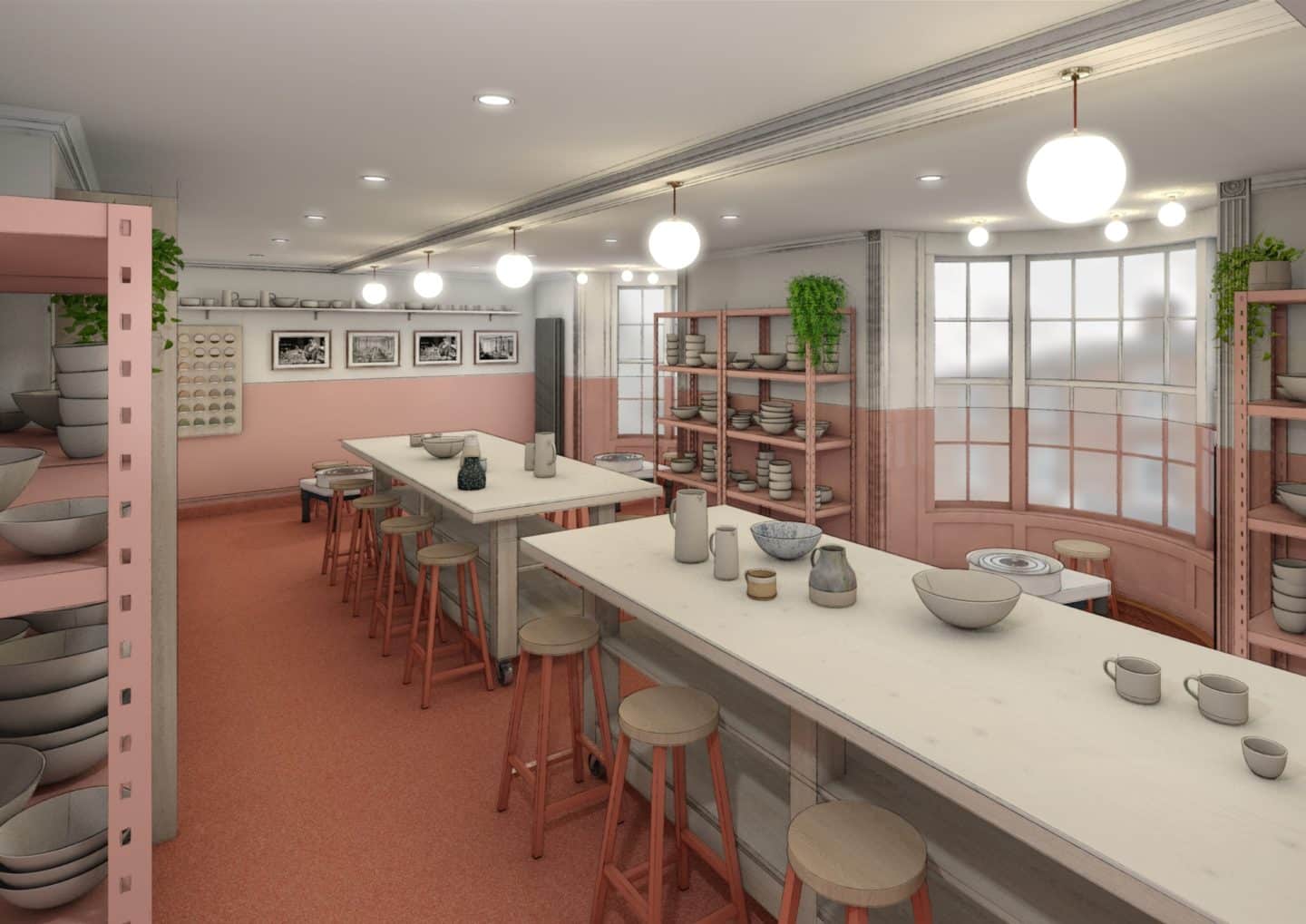 Downstairs offers a pottery boutique that celebrates the best in handmade British pottery and features products made by potters in the upstairs quirky and intimate pottery studio – which also offers classes to the public. Upstairs offers a more playful and creative environment, with earthy tones it encourages the customers to go back to basics.