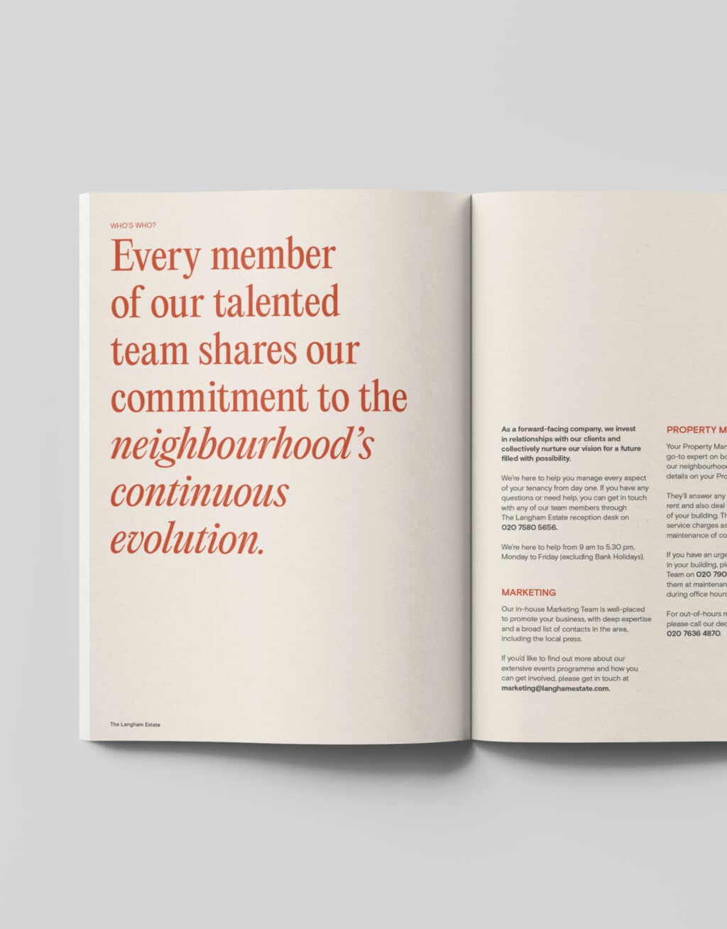 With one of London’s largest property portfolios, The Langham Estate approached us to refresh their brand. This revitalised brand would evolve the business into its next era, with an outlook that combined its centuries of legacy and expertise with a forward-facing approach.