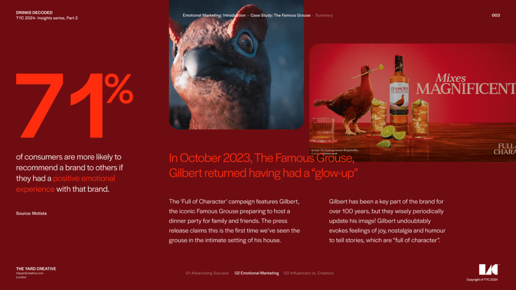 The ‘Full of Character’ campaign features Gilbert, the iconic Famous Grouse preparing to host a dinner party for family and friends. The press release claims this is the first time we’ve seen the grouse in the intimate setting of his house.