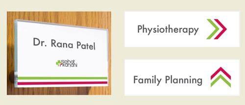 The Sehat Kahani brand was applied consistently to interior spaces and core brand colours were used as bold accents to clearly define the dedicated Sehat Kahani clinic areas. Signage and navigation also received a graphic overhaul to ensure brand consistency throughout.